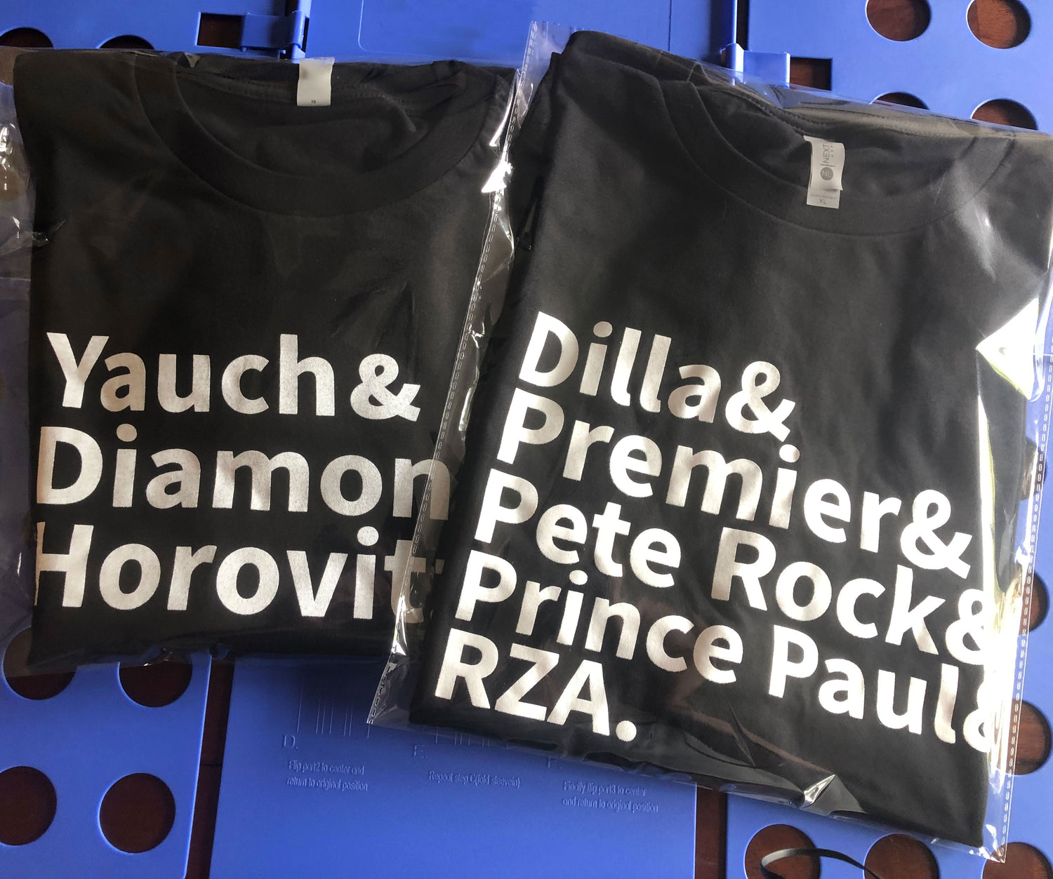 Old School Combo - Yauch, Diamond, and Horovitz (Beastie Boys) Tee, as well as a Dilla, Premier, Pete Rock, Prince Paul, and RZA Tee